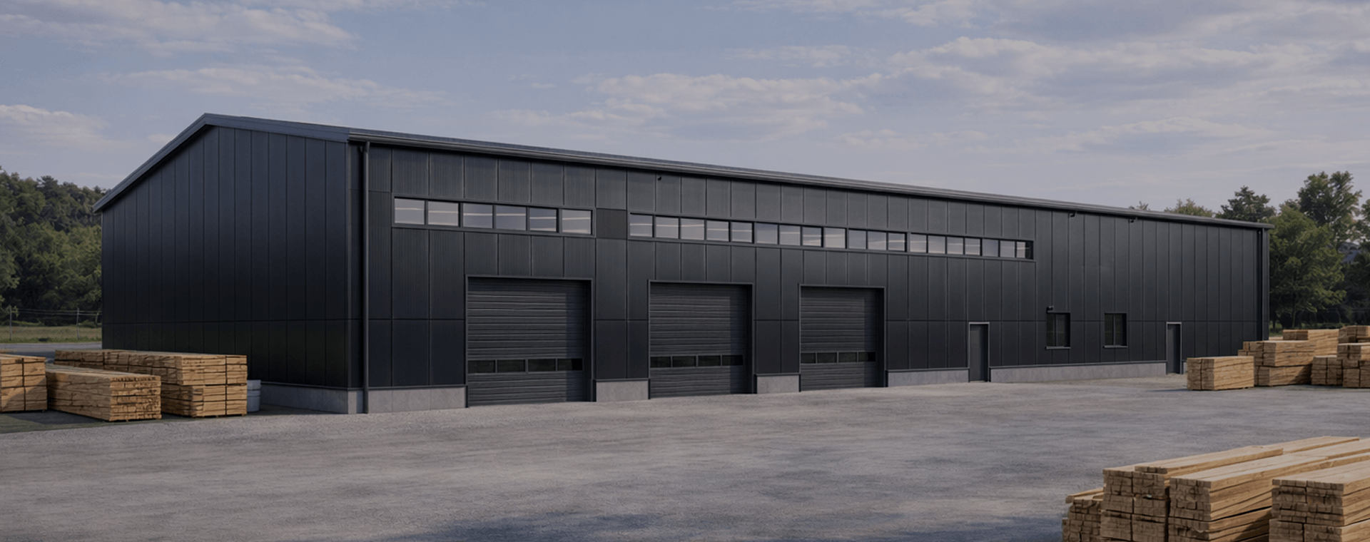 Здание для размещения производственных линий, сушильных камер, складов древесины,